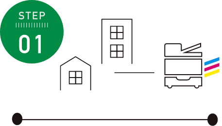 レンタル複合機の搬入、設置、ネットワーク接続(移動式Wi-fiも当社でお貸出しが可能)・設定作業を行います。ご利用開始です。